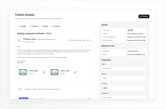 Our ticketing system helps you organize and track customer issues efficiently Assign monitor and resolve requests quickly ensuring timely responses and improved customer satisfaction.